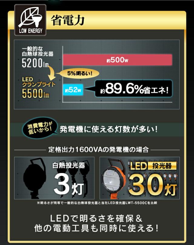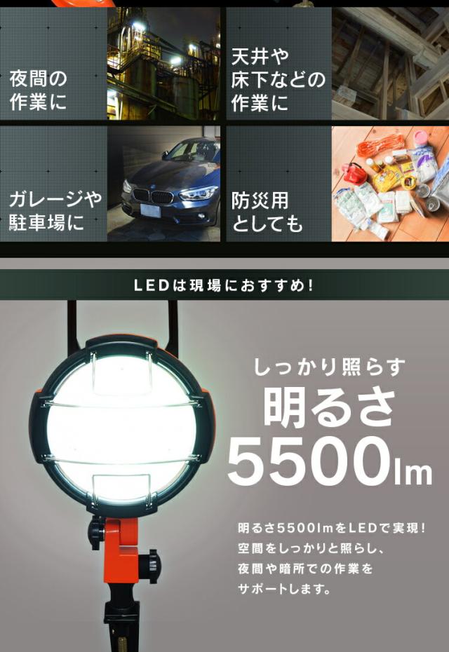 LED作業灯 5500lm 投光器 led 屋外 LWT-5500C 作業灯 led 防水 投光器 クランプ LED作業灯 LED投光器 昼光色 LED 照明 防雨型 防災用 作業場 省電力 防雨 防塵 広配光 角度調節 長寿命 非常時 非常灯 災害 防災 アイリスオーヤマ