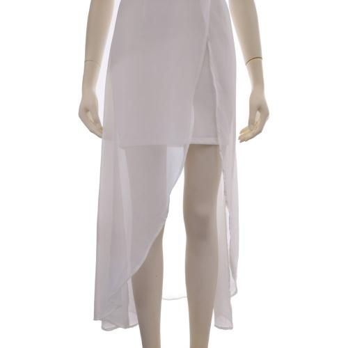 ふんわりとしたシフォン生地をアシンメトリックに重ね合わせたロングワンピース。