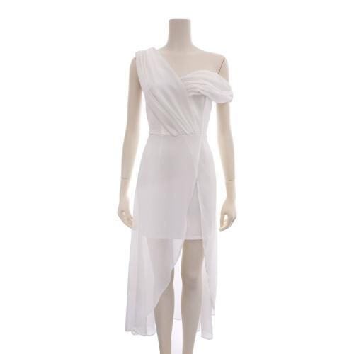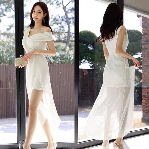 【グラシア】 キャバ ドレス キャバドレス ワンピース ロングドレス ワンショルダー エアリー シフォン ふんわり ロング 透け感 ホワイト S M L XL