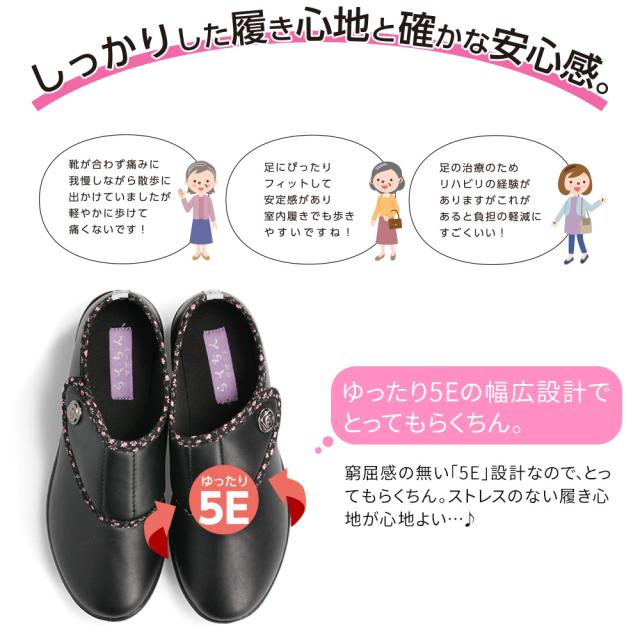 ゆったり5Eの幅広設計でつま先ゆったりらくちん。
