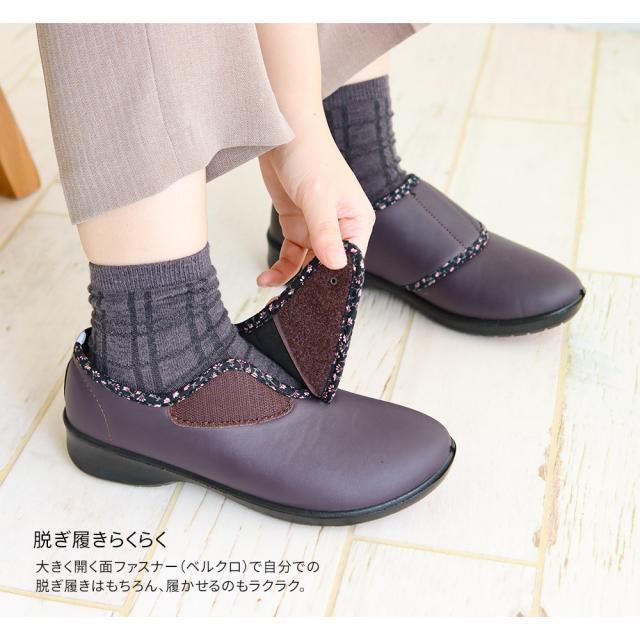コンフォートシューズ レディース おしゃれ 介護シューズ 5e 幅広 リハビリシューズ レディース 履きやすい 痛くない 介護靴 リハビリシューズ マジックテープ 外反母趾 母の日 敬老の日 小さいサイズ 大きいサイズ 黒 ブラック ベージュ パープル 531-568 送料無料