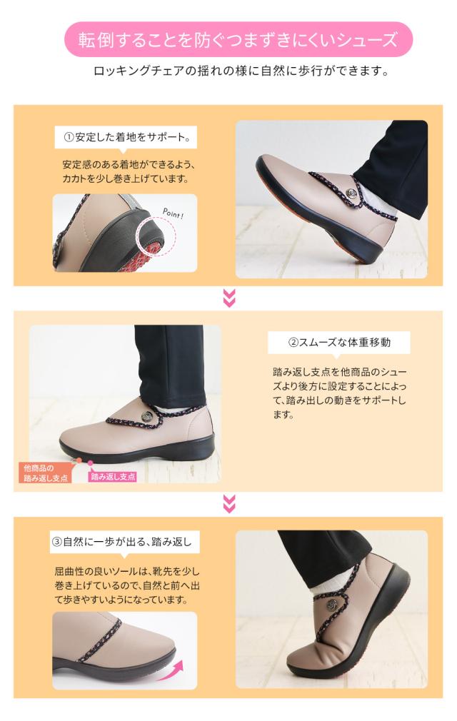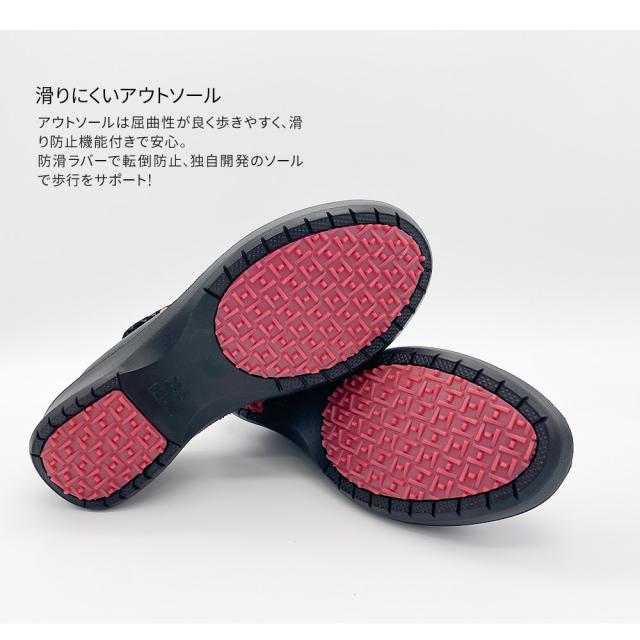 防滑ラバーで転倒防止、独自開発のソールで歩行をサポート!