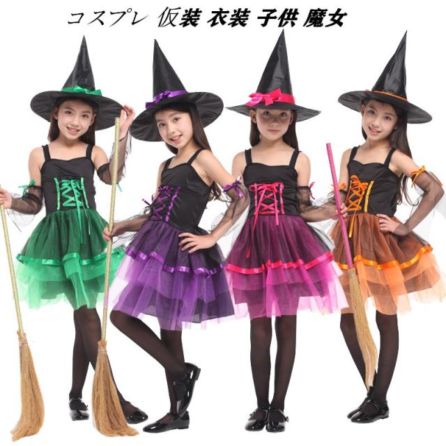 ハロウィン コスプレ 仮装 衣装 子供 魔女 女の子 コスチューム キッズ 可愛い ドレス スカート イベント パーティー