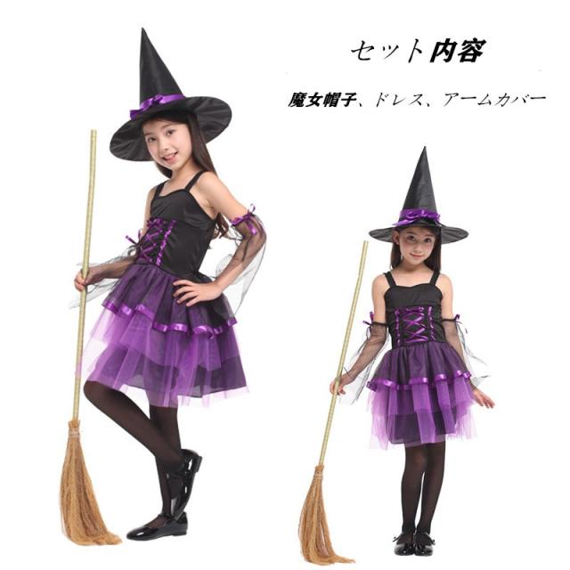 ハロウィン コスプレ 仮装 衣装 子供 魔女 女の子 コスチューム キッズ 可愛い ドレス スカート イベント パーティー 送料無料