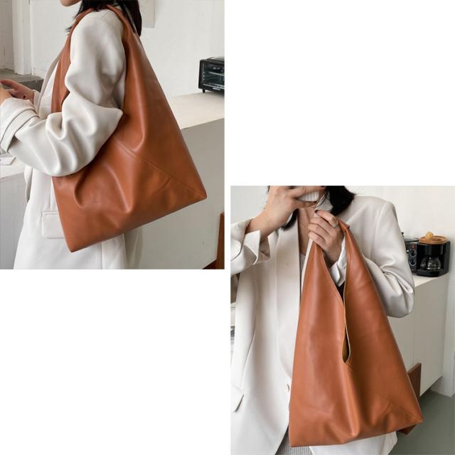 全品送料無料一部除く トライアングルバッグ トートバッグ 【即納】マルシェバッグ ハンドバッグ ホーボーバッグ フェイクレザー PU ブラック ホワイト ブラウン レディース 韓国 プチプラ 流行り トレンド