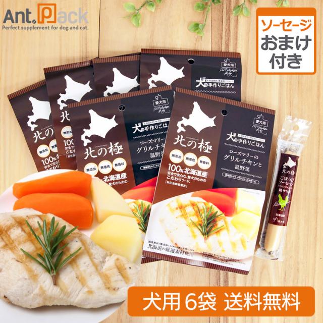 北の極 ローズマリーのグリルチキンと温野菜 犬用 80g×6袋+おまけ(ごほうびソーセージ 鶏ササミ)