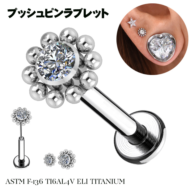 挿すだけ装着 プッシュピン 20G 18G 16G 14G フラワー プレミアムジルコニア チタンピアス 金属アレルギー対応 ラブレットスタッズ ボディピアス