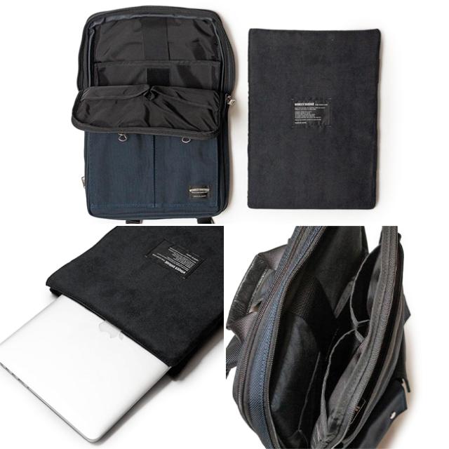Apple社のMacbookを基準に最大16インチのノートPCが収納可能。さらに極厚のウレタンを使用したインナーPCクッションを付属しており、大切なデバイスを持ち運ぶ際にも安心感があります。