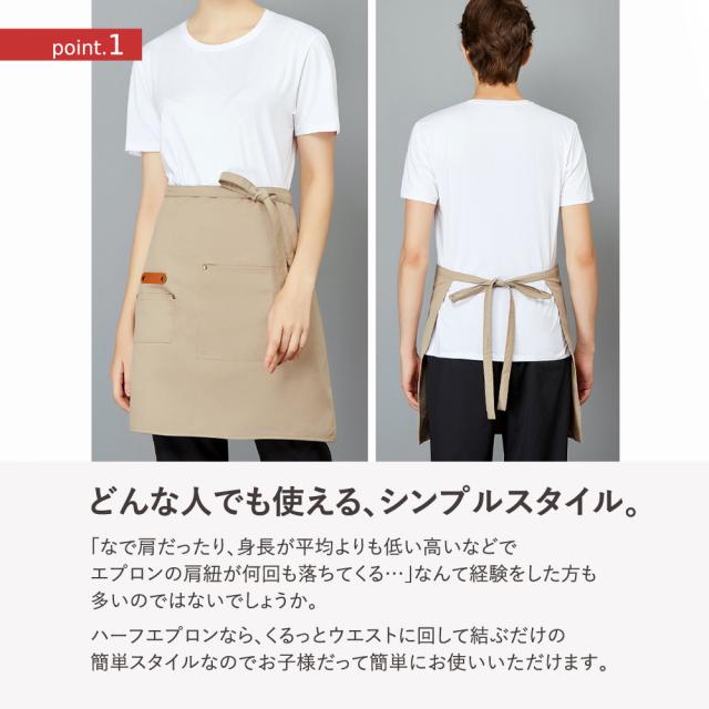 ハーフエプロンなら、くるっとウエストに回して結ぶだけの簡単スタイルなのでお子様だって簡単にお使いいただけます。