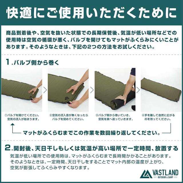 ※初回使用時や長期保管後は、マット本体が膨らむまで長時間かかります。