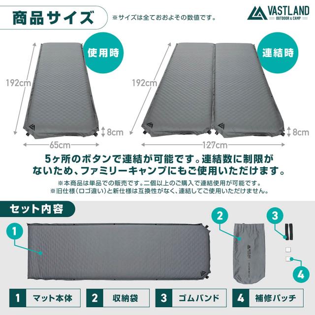 また、複数のマットを連結することで、横幅を広げられ、ファミリーキャンプや車中泊に最適です。