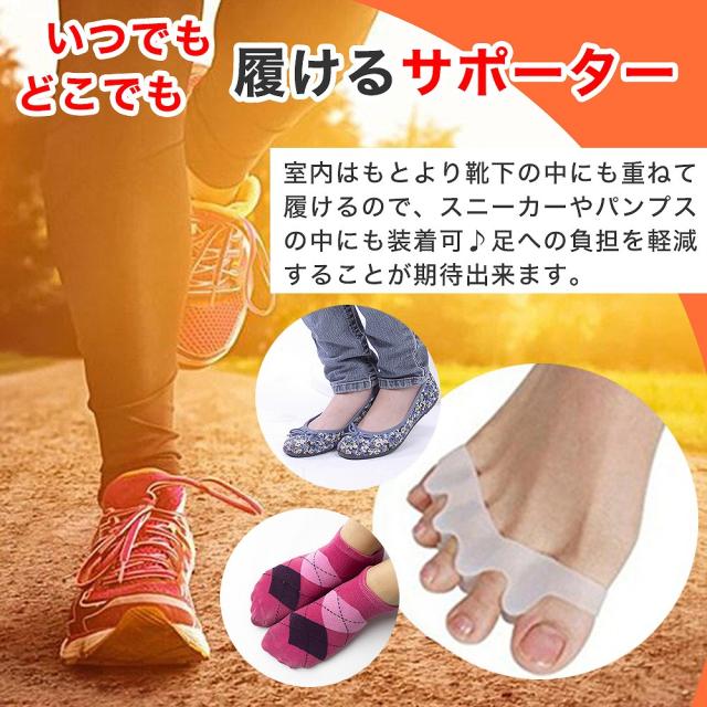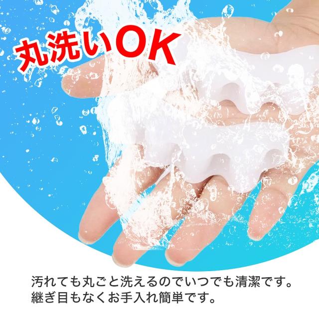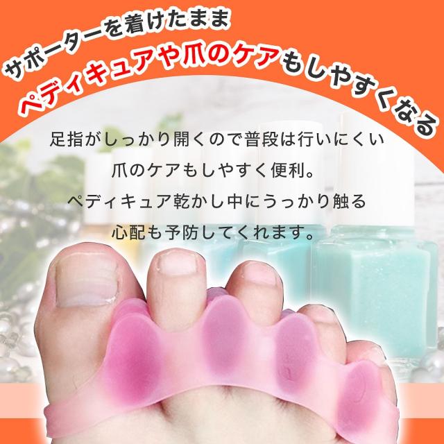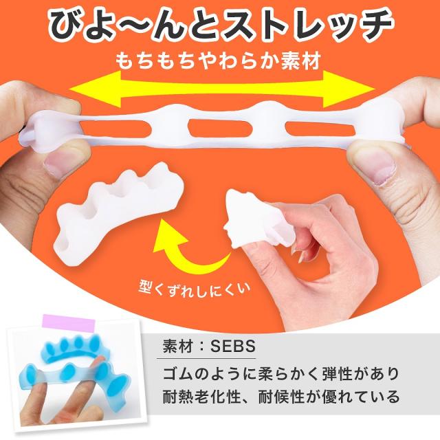 柔らかく弾力性のある素材が、縮こまった足指をパッと開いてくれ、足指をサポートしてくれます。