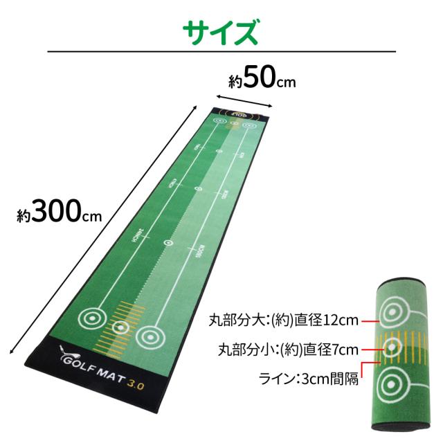 洗える パターマット 3m 折りたたみ ゴルフ パター 練習 マット ゴルフ練習 屋外 室内 パター練習 コンパクト 収納 洗濯