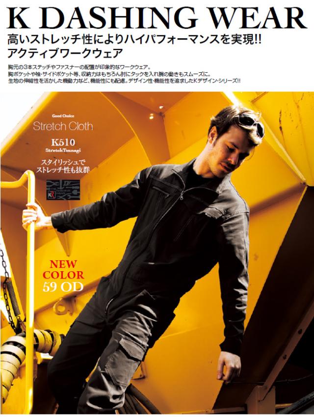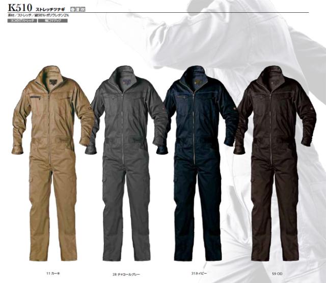 ストレッチ ツナギ K510 カーキ 5L クレヒフク 春夏 秋冬 作業着 メカニック ユニフォーム 送料無料