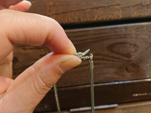 そのまま身につけても、ペンダントトップに通しても幅広いコーディネートが楽しめるチェーンです。
