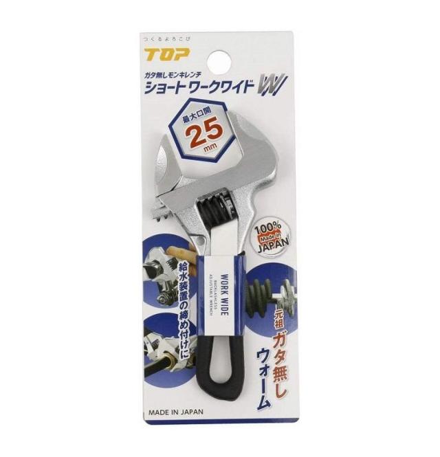 トップ工業 TOP ガタ無シモンキレンチ ショートワークワイド ブラックグリップ 口開長25mm HM-25MSBK