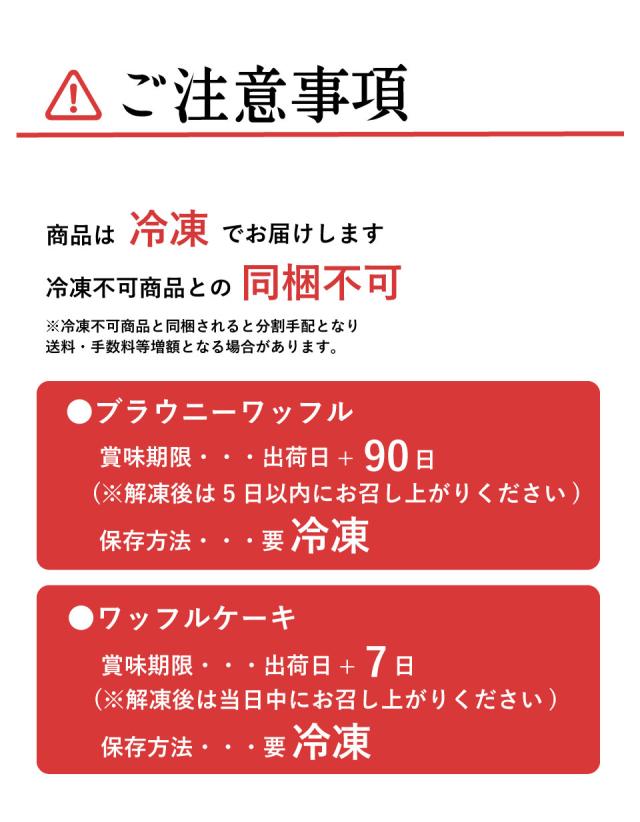 〇ブラウニーワッフル…出荷日+90日(解凍後は5日以内が消費期限となります)