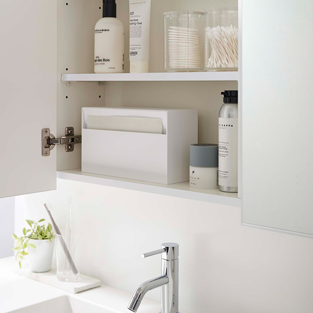 ゴミ箱以外にも収納ケースとして、生理用品などの小物を隠して収納。