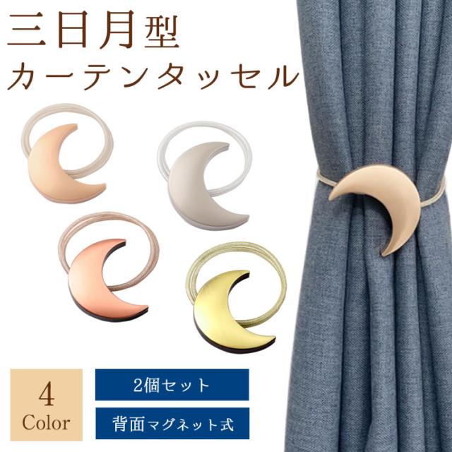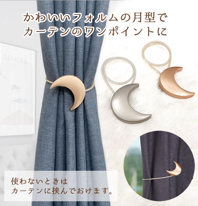 2個セット 月型 カーテンタッセル マグネット式 カーテン留め ワンタッチ ムーン 三日月 かわいい おしゃれ カーテン タッセル 房掛け不使用 PR-TASSEL04【メール便 送料無料】