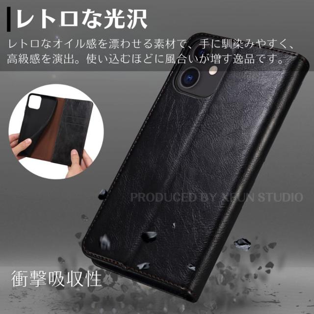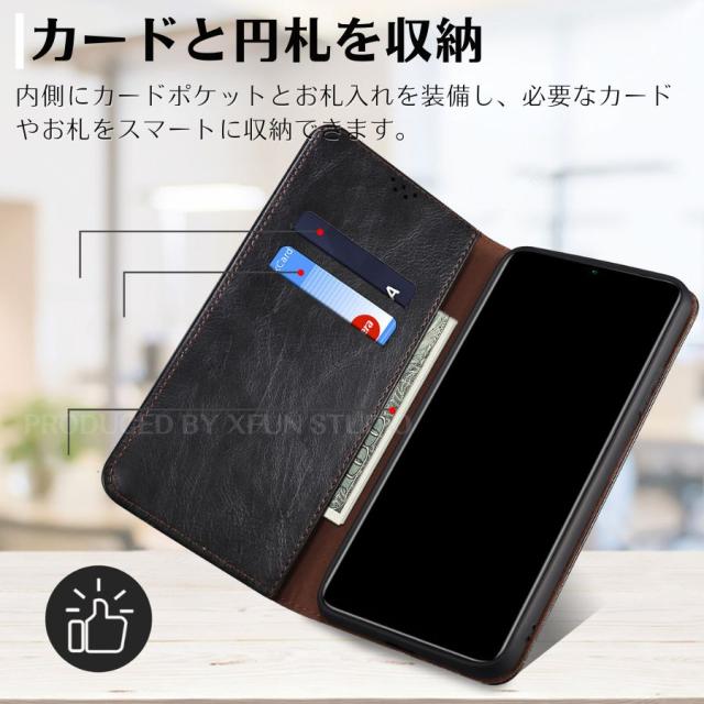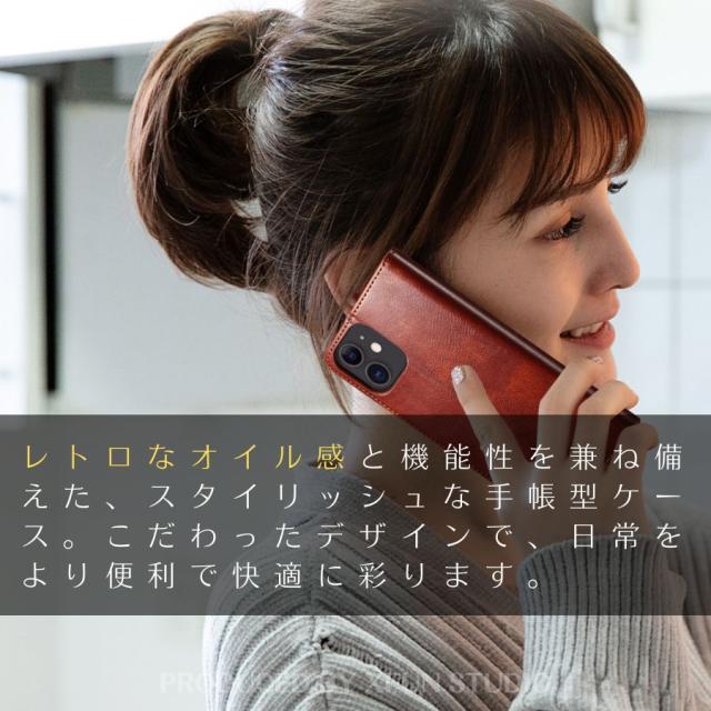 レトロなオイル感と機能性を兼ね備えた、スタイリッシュな手帳型ケース。マグネット開閉やスタンド機能、多彩な収納ポケットなど、使い勝手にもこだわったデザインで、日常をより便利で快適に彩ります。