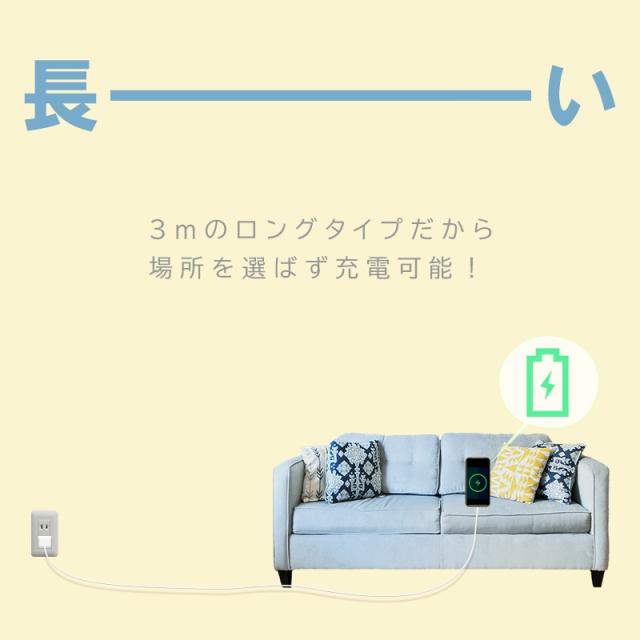3mの長さがあるので、今まで長さが足りずに使いたい場所で使えなかったという悩みを解消します。