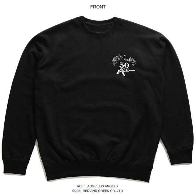 ACEFLAG ストリート系 トレーナー 長袖 裏パイル メンズ レディース 黒 白 大きいサイズ エースフラッグ スウェット 十字架 THUG LIFE サグライフ b系 ヒップホップ ファッション ダンス ブランド 服 AF-TL-SW-021