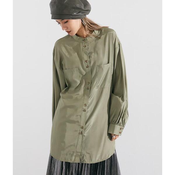 光沢のあるつるっとしたサテン素材のオーバーシャツ。