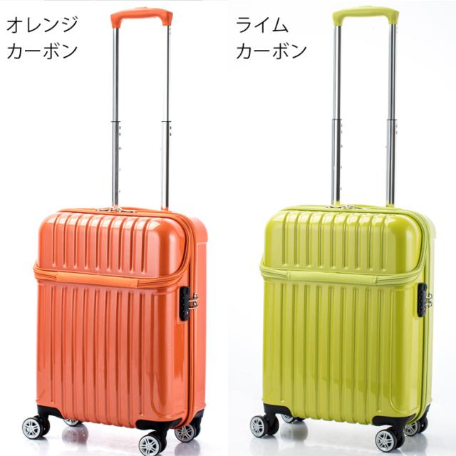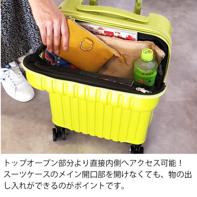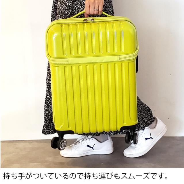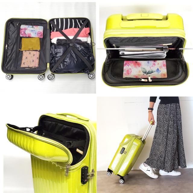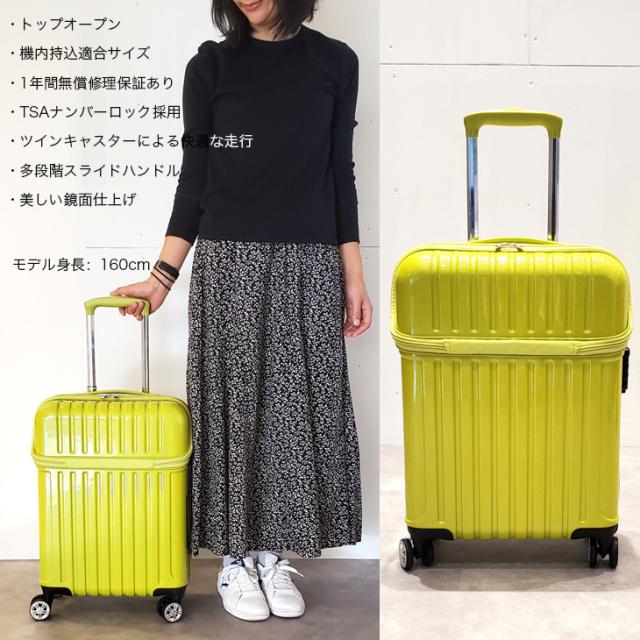 床に寝かせなくても荷物を出し入れできる、機内持込適合サイズのスーツケースです。