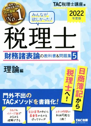 【中古】 みんなが欲しかった!税理士 財務諸表論の教科書&問題集 2022年度版(5) 理論編/TAC税理士講座(編者)