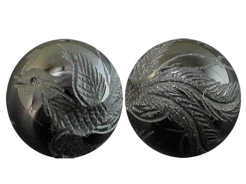 鳳凰 12mm丸玉ビーズ モリオン/黒水晶 素彫り 【彫刻 一粒売りビーズ】 天然石 パワーストーン