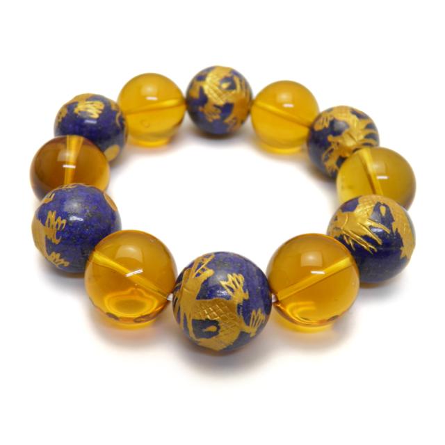 20mm ラピスラズリ 金龍 シトリンクォーツ 大玉ブレスレット 数珠 ブレスレット メンズ 男性用 天然石 パワーストーン