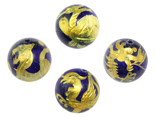 四神獣4点セット ラピスラズリ金彫り 彫刻ビーズ 8mm玉 青龍・朱雀・白虎・玄武 天然石 パワーストーン