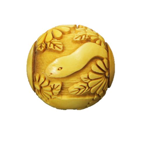 【浮彫】 白蛇・弁財天 横穴 柘植玉 約18mm No.005【穴あり一粒売りビーズ】