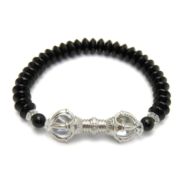 水晶(銀)五鈷杵 オニキス ブレスレット 密教 チベット法具 パワーストーン プチギフト 転勤 退職 お礼 母の日 敬老の日 クリスマス ギフト