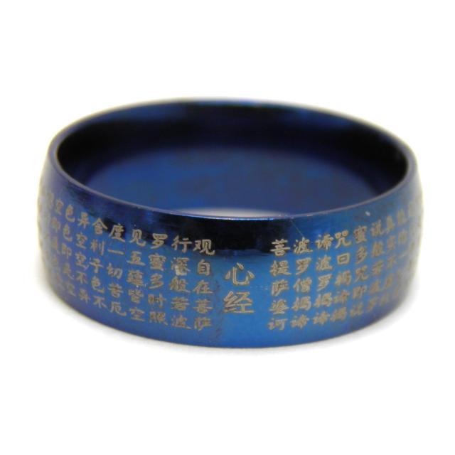 般若心經 リング 11-13号 青 ステンレスチタンコーティング プチギフト 転勤 退職 お礼 母の日 ギフト
