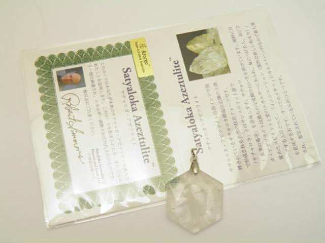 ■商品の内容 サチャロカ・アゼツライト・アゾゼオ・ヘキサグラムカット・ペンダント/13g ヘキサゴン 六芒星 天然石 パワーストーン綺麗なサチャロカ・アゼツライトの六亡星/大衛星の大粒ペンダントです。サチャロカ・アゼツライトは、南インドのサチャロカ修道院周辺の土地でのみ採掘される大変希少な水晶です。サチャロカとは、サンスクリット語で「真の場所」を意味し、高次元の光のエネルギーに満たされている聖域といわれています。アゼツライトと波動やエネルギーが似ている事からサチャロカ・アゼツライトとも呼ばれるようになりました。このパワーストーンも米国のHEAVEN&EARTH社(へヴン&アース社)のパワース