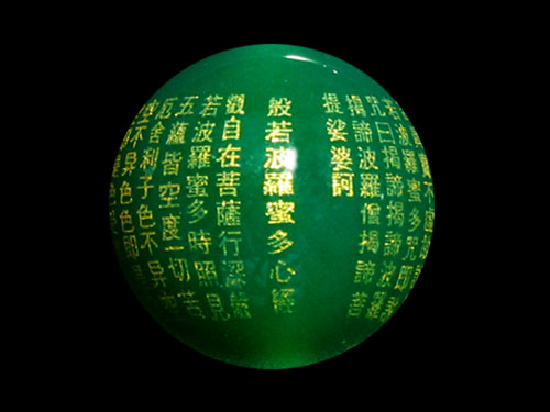 般若心經・彫刻ビーズ グリーンメノウ・縦穴 金 16mm 【穴あり一粒売りビーズ】 天然石 パワーストーン