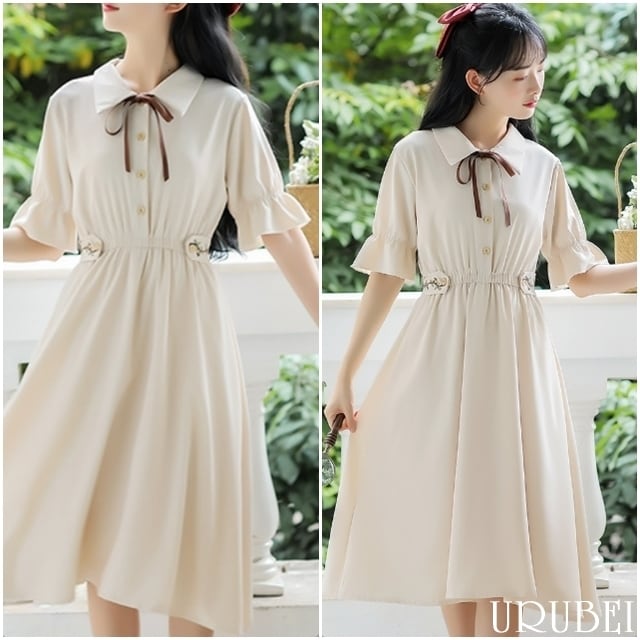 首元の細めのリボンがシックな印象を与えてくれます。