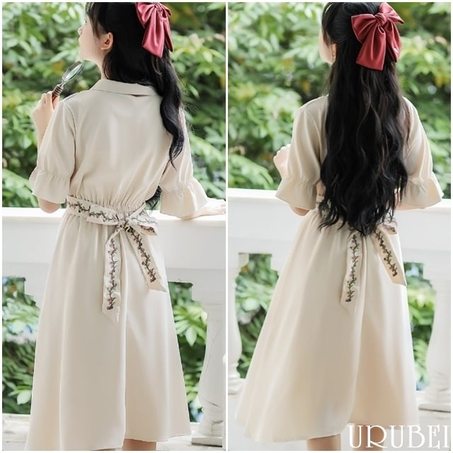 ウエストのベルトには花の刺繍が施されているから後ろから見ても萌えかわ♪