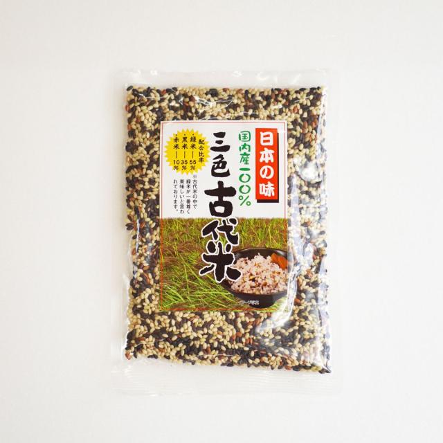 ◆古代米の中でも代表的な色どりあざやかな3種類を使用し、すべて国産原料にこだわりました。