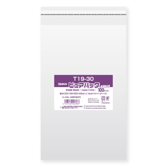 【直送/代引不可】OPP袋 ピュアパック テープ付 T19-30 5000枚