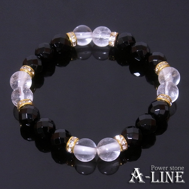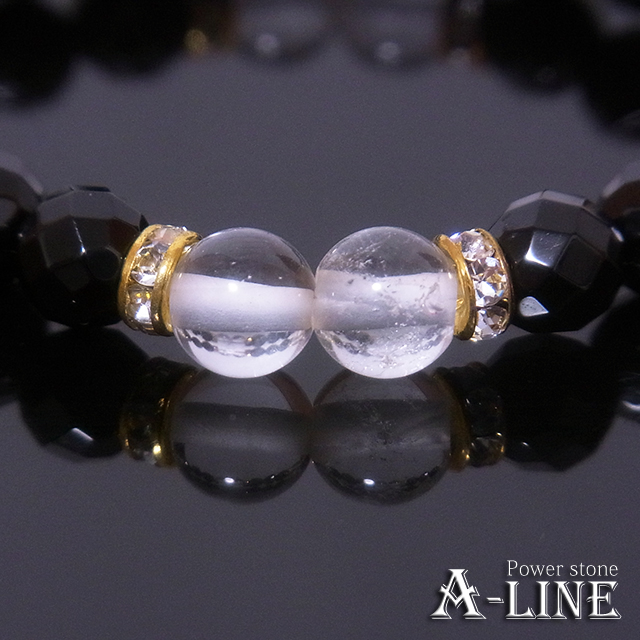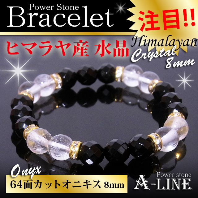 パワーストーン ブレスレット 強力な魔除けや浄化に ヒマラヤ産水晶8mm&64面カットオニキス8mm PW-3449