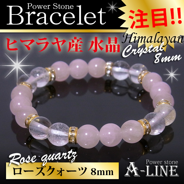 パワーストーン ブレスレット 強力な魔除けや浄化に ヒマラヤ産水晶8mm&ローズクォーツ8mm PW-3450