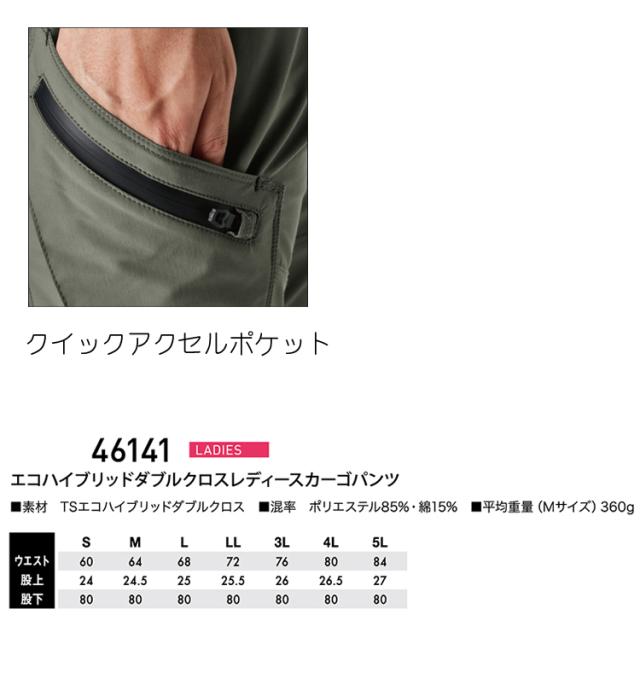TSDESIGN 藤和 エコハイブリッドクロスレディースカーゴパンツ 46141 通年 カーゴパンツ 作業服 女性作業服