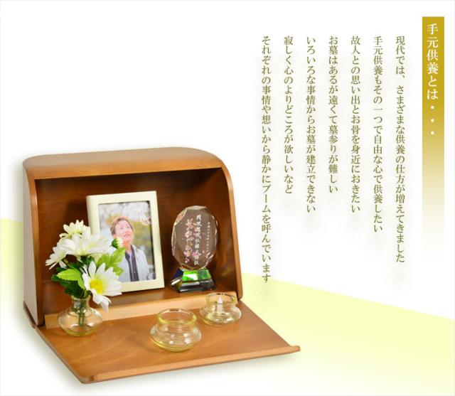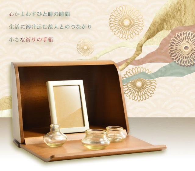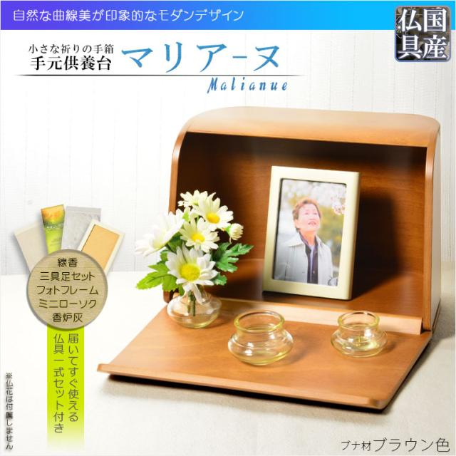 国産仏具・仏壇【手元供養台:やさしい曲線美 マリアーヌ・ブナ材 ブラウン 仏具込み】供養台 手元供養 骨壷 オープン仏壇 ミニ仏壇 送料無料