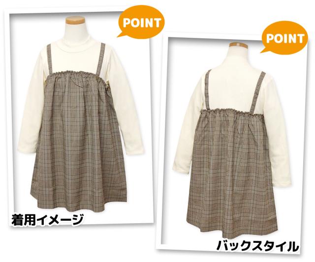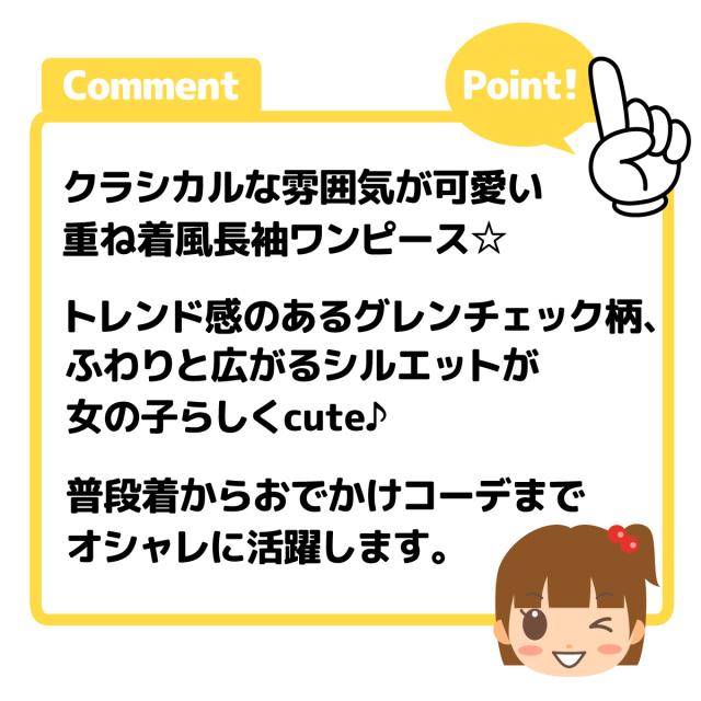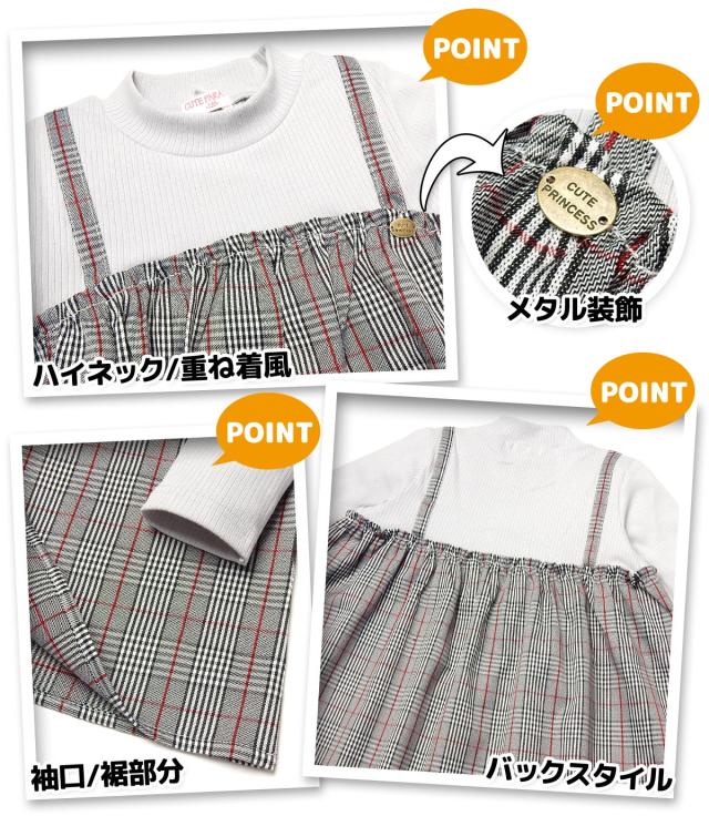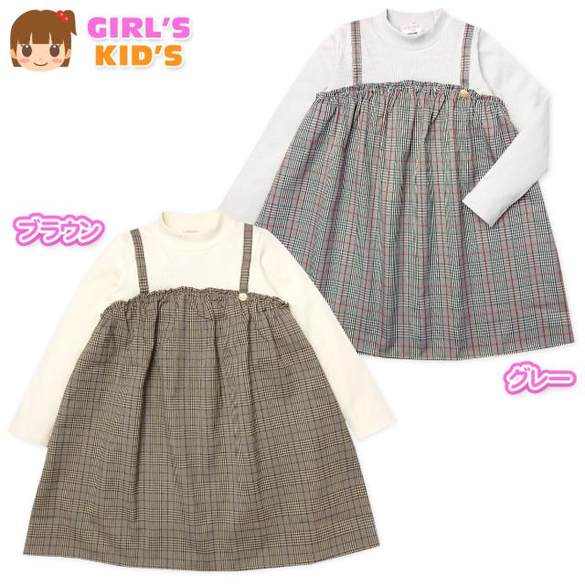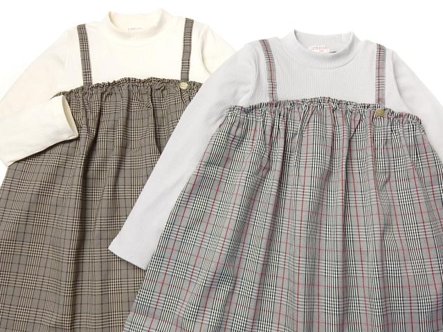【送料無料】女児 キッズ 重ね着風 長袖 ワンピース グレンチェック柄 ハイネック テレコリブ 子供服 女の子 110cm 120cm 130cm nw-0449【メール便対応】
