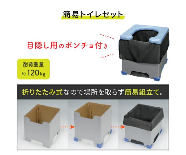 ●セット内容/テント本体×1、トイレ本体×1・便座×1・汚物袋×5枚・凝固剤×5個・簡易ポンチョ×1・脚キャップ×4