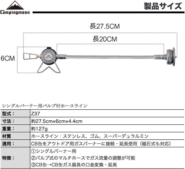 キャンピングムーン(CAMPING MOON)シングルバーナー用 CB缶 互換アダプター マルチガスホースライン ねじ込み式 変換アダプター ST-310対応可能 バルプ付マルチガスホースライン Z37