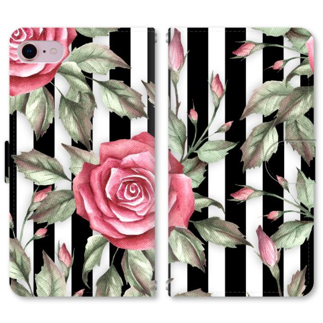 スマホケース 手帳型 iPhone13 iPhoneSE2 アイフォン 8 aquos sense GooglePixel xperia galaxyなど多機種制作対応 m2276_水彩バラ