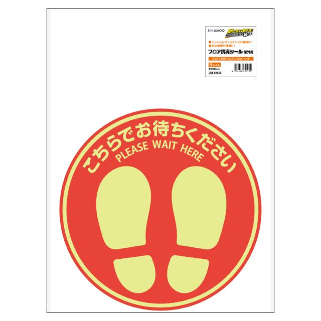 ヒサゴ SR033 フロア誘導シール屋外用 こちらでお待ちください 丸(大)(レッド)[SR033] 返品種別A